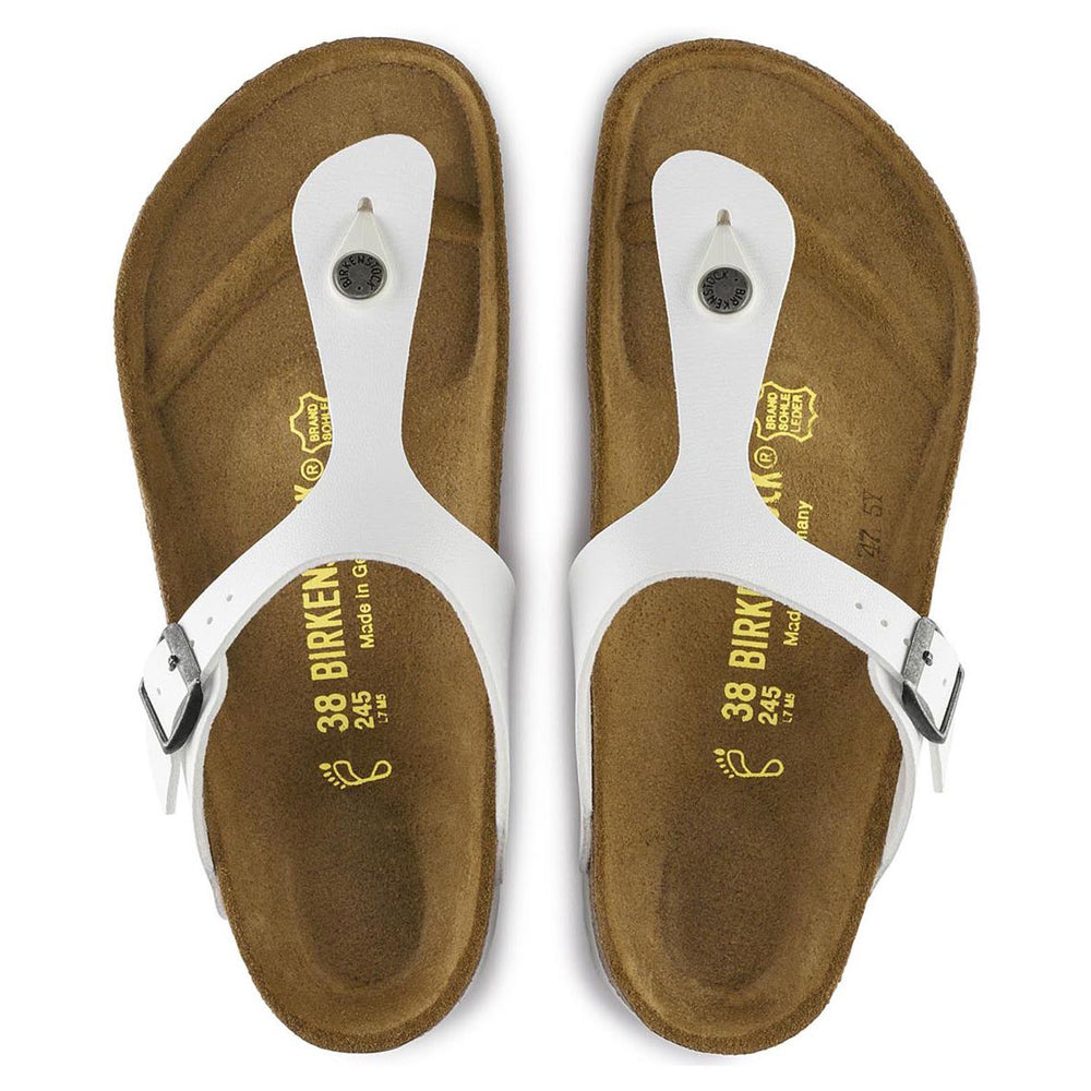 First introduced in 1983, the iconic Birkenstock thong sandal, the Gizeh, is celebrating 40 years! Perfectly designed and classically styled. Most women love this sandal because it offers classic Birkenstock arch support with a touch of elegant simplicity. The toe piece is made of flexible resin, anatomically designed to fit comfortably between the toes and the strap has a buckle for a secure fit over your instep. The perfect choice for travel, or any summer adventures.